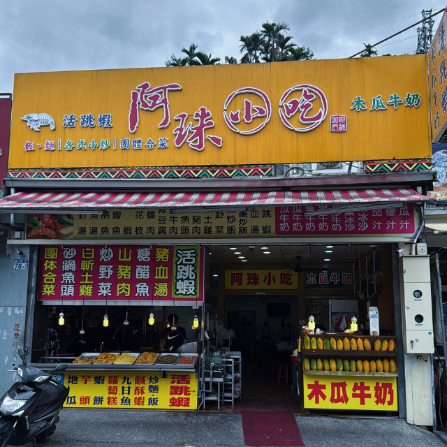 創立於1985年、位於鯉魚潭畔的「阿珠小吃」,由熱愛料理的阿珠姐創辦,以「簡單,就是最好吃的味道」為信念,從小小的攤位起家,憑著實在的口味與親切的待人方式,逐漸在當地建立起口碑,傳承至今已近40年。 堅持每日現煮、手作的料理,美味更有人情味。招牌蝦餅外酥內香,用整隻蝦子與高麗菜混韭菜手工製作,金黃酥脆。豬血湯軟嫩滑口,湯頭鮮美。 木瓜牛奶每日現打不加冰,用熟成木瓜與瑞穗全脂鮮奶,是夏天來阿珠小吃必點的解暑招牌飲品。